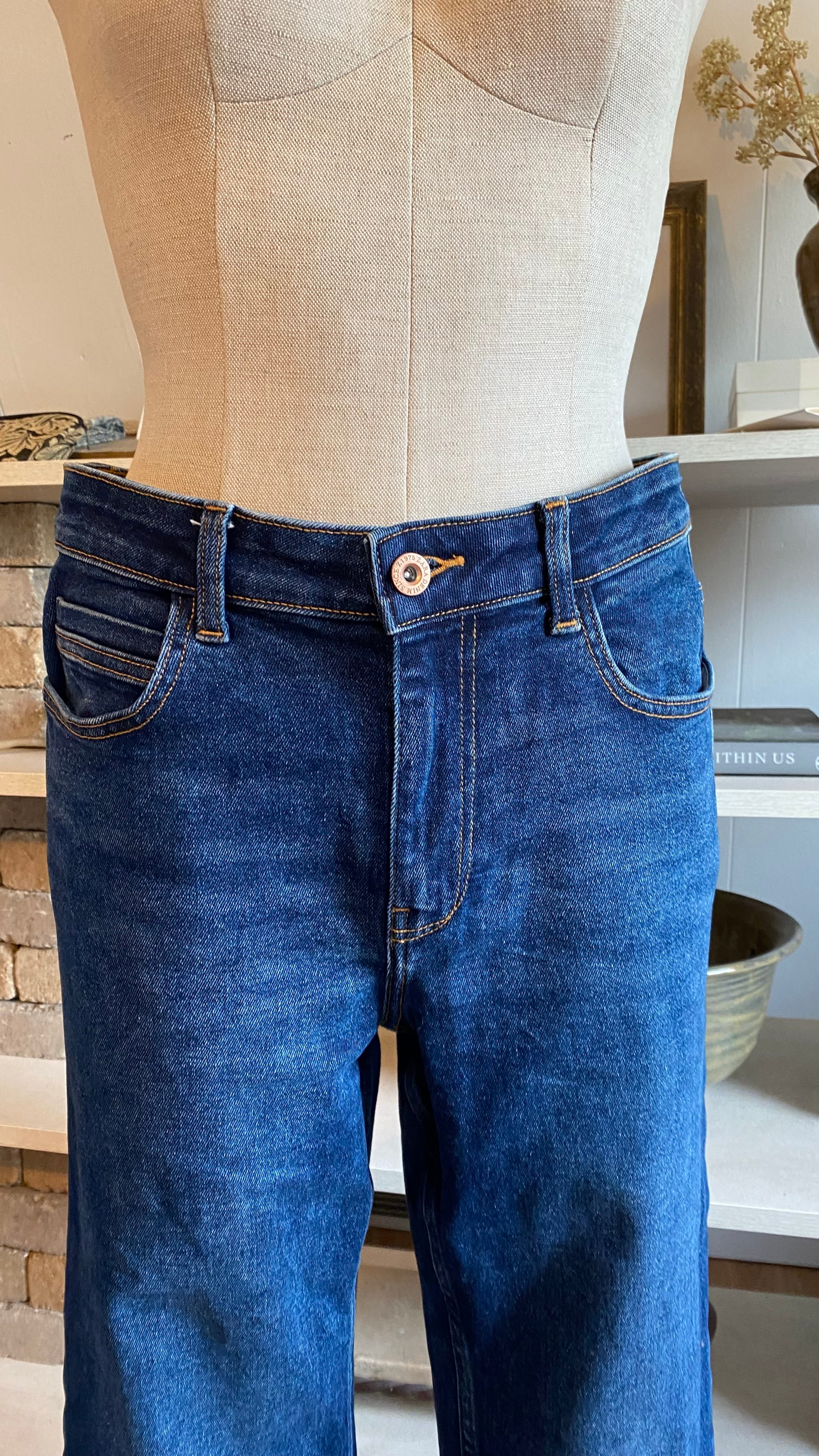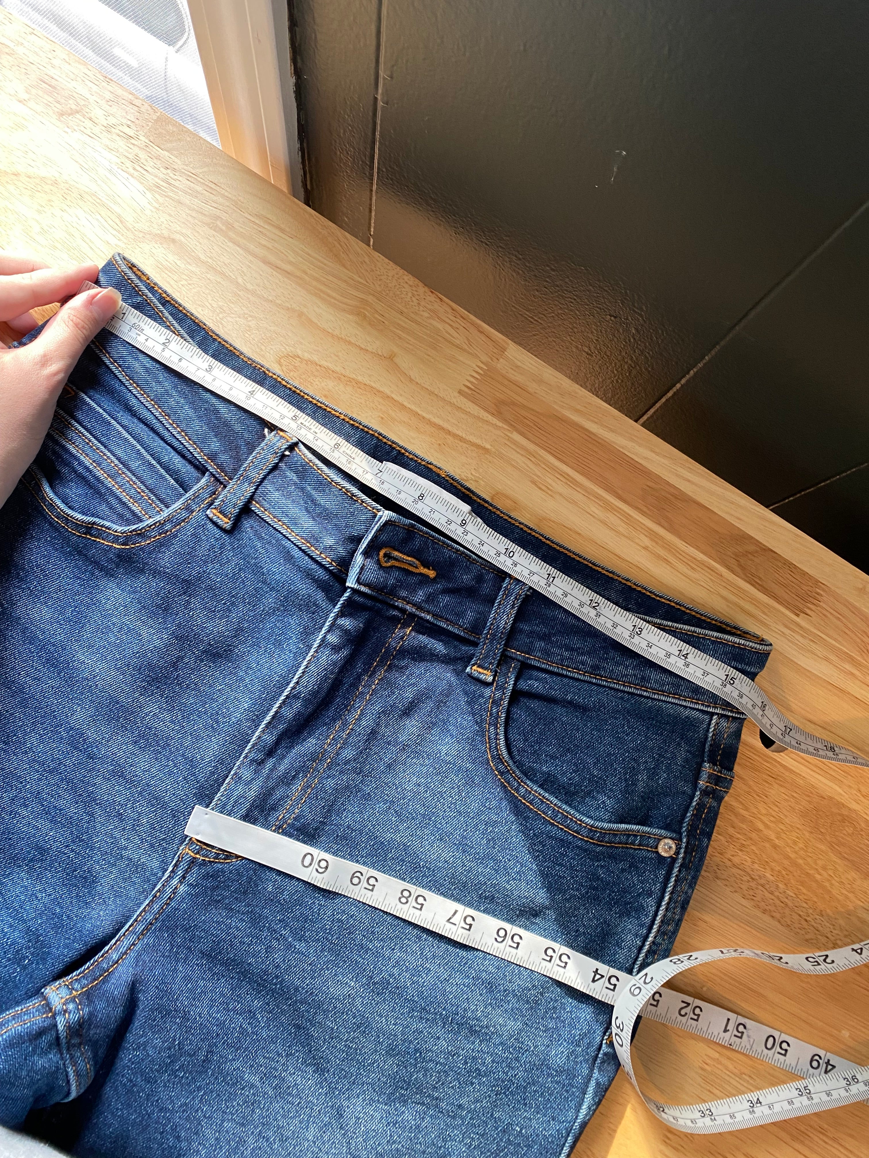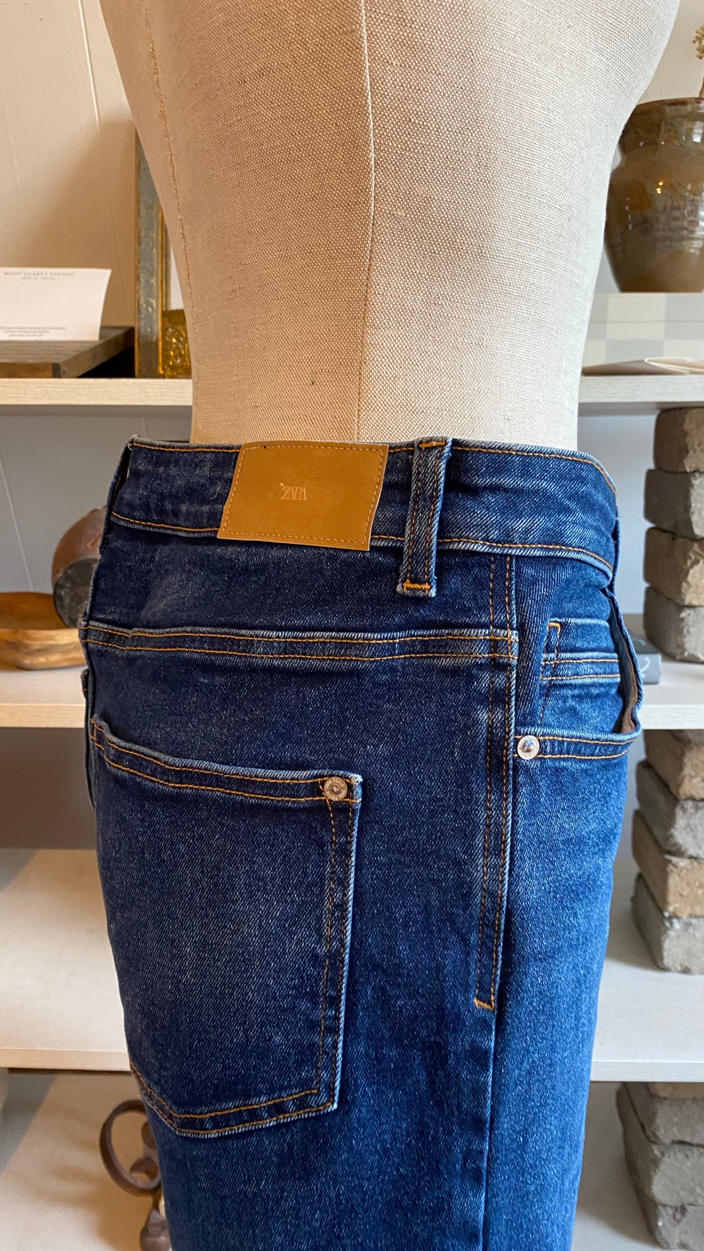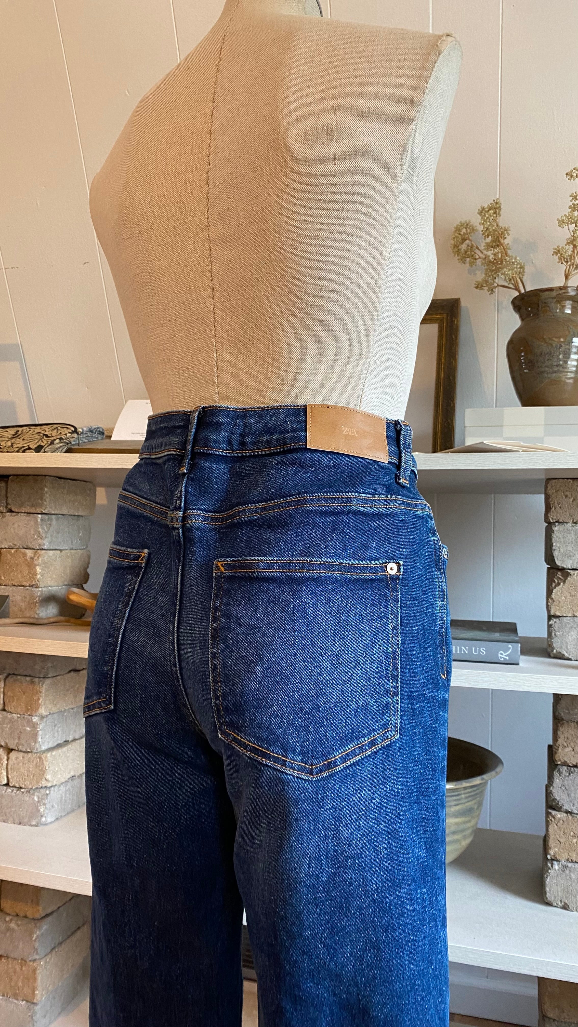 Zara size 8 high waisted dark wash denim (hemmed denim) measurements in photos