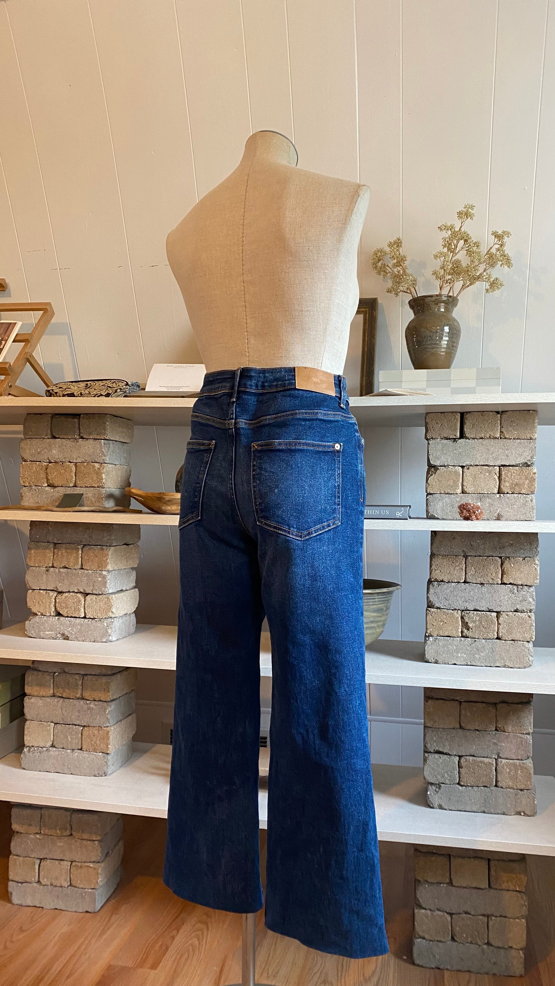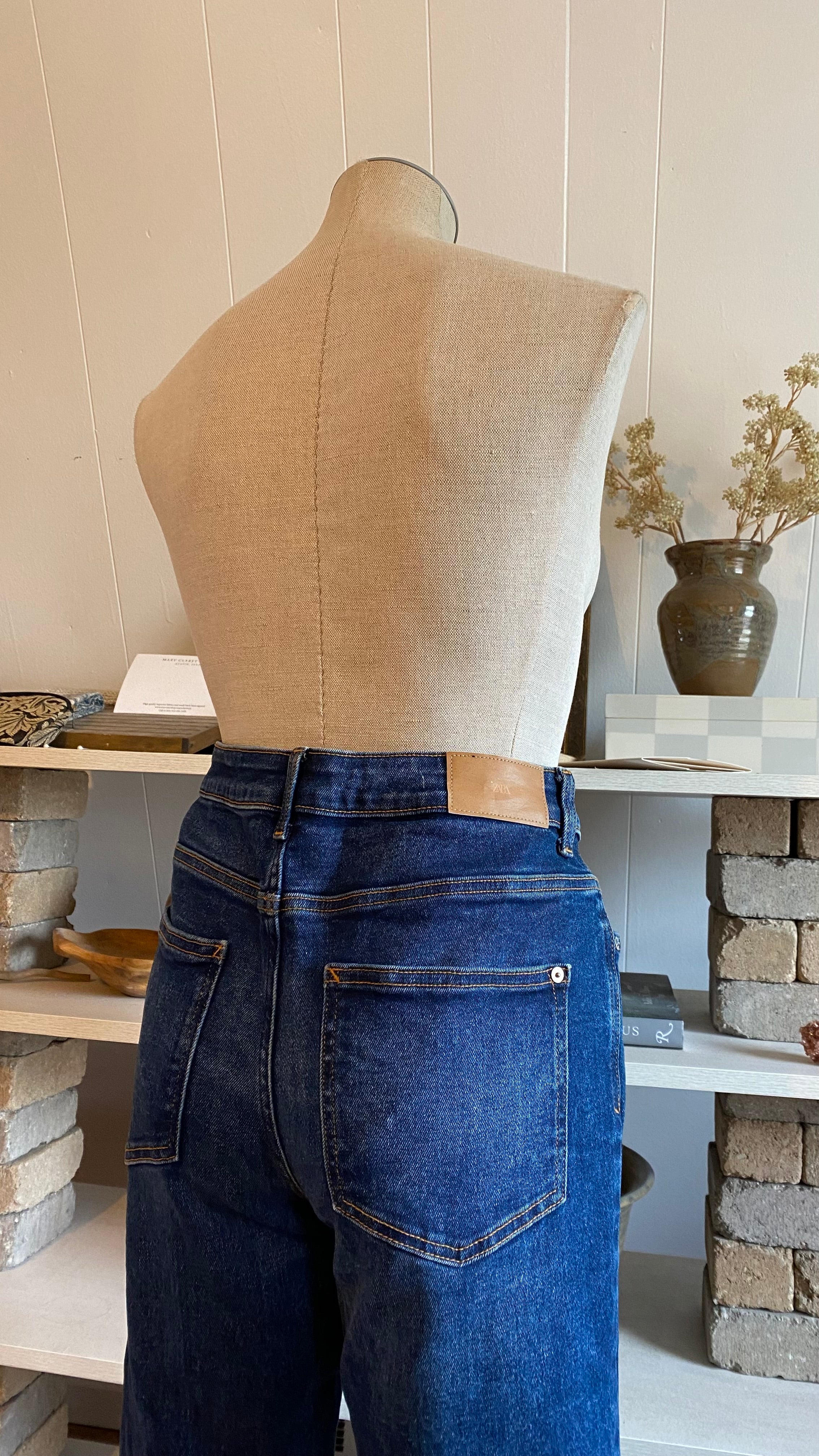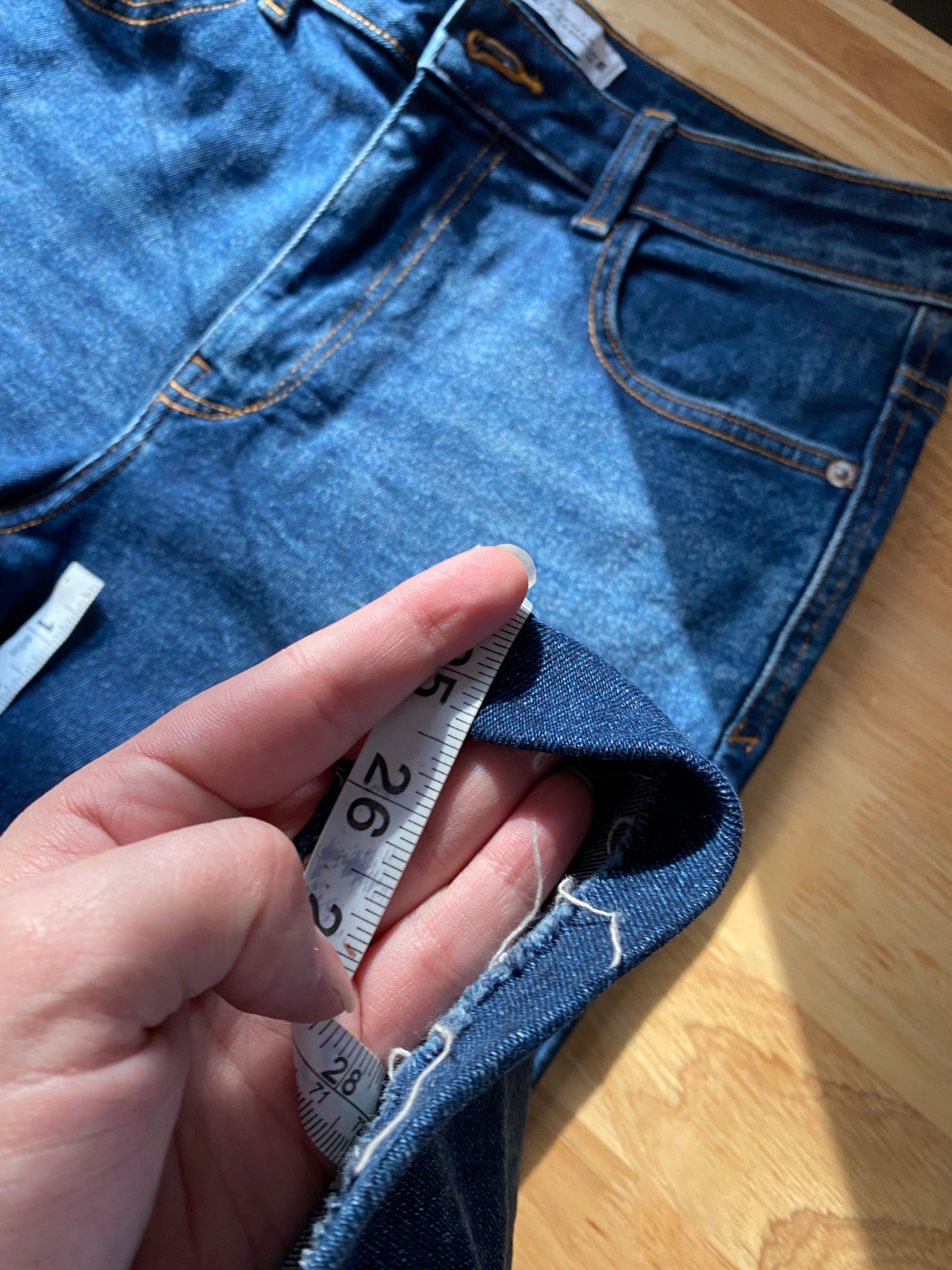 Zara size 8 high waisted dark wash denim (hemmed denim) measurements in photos