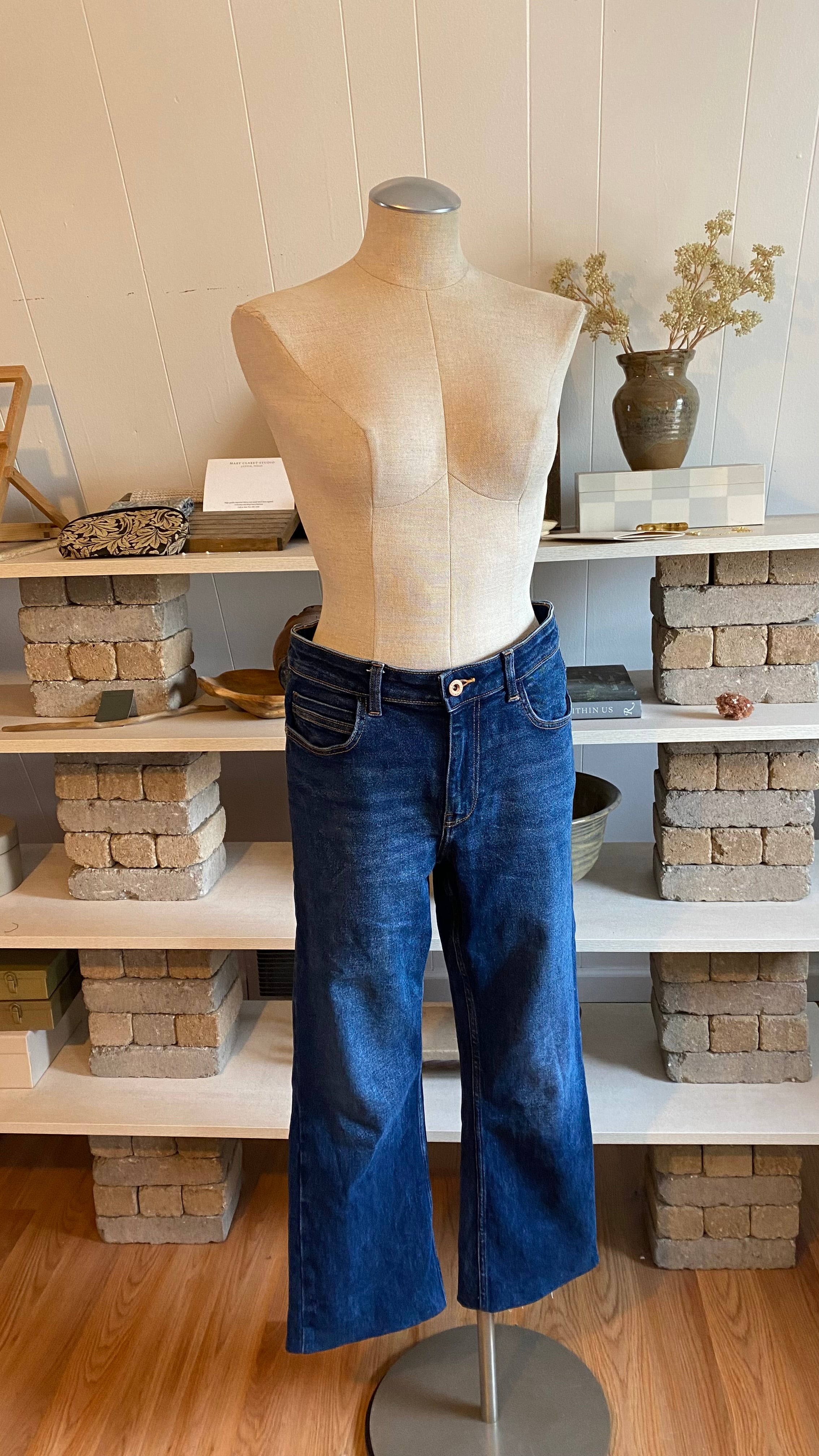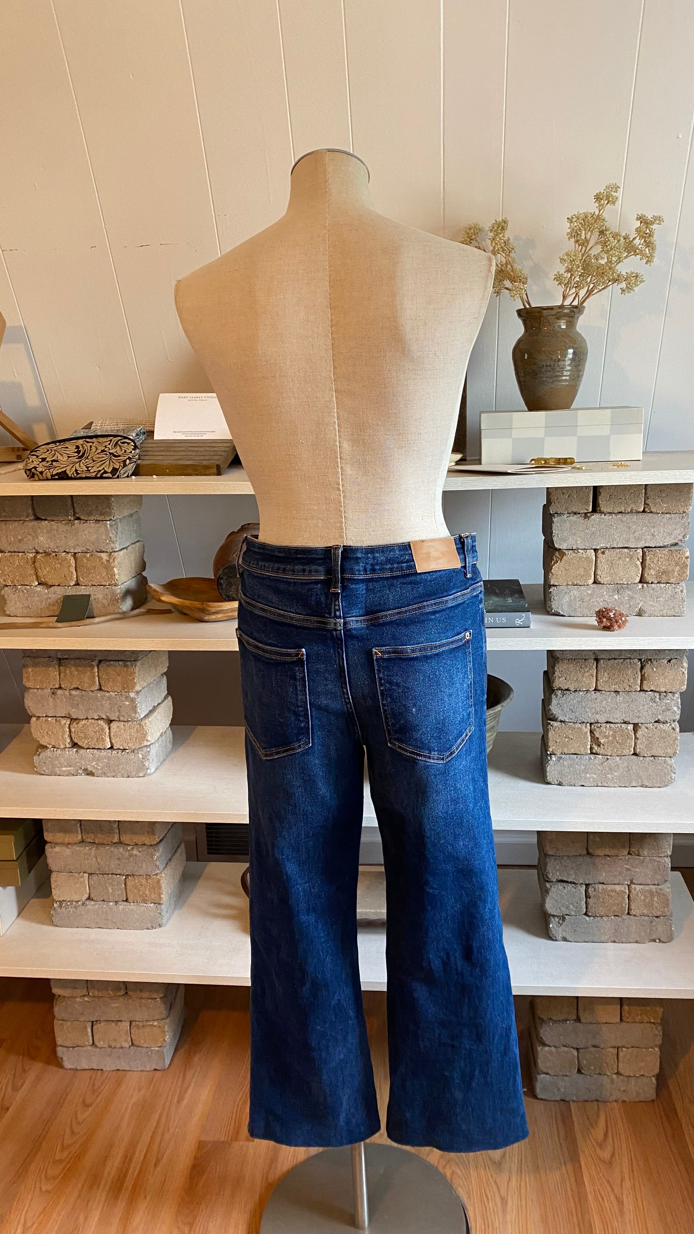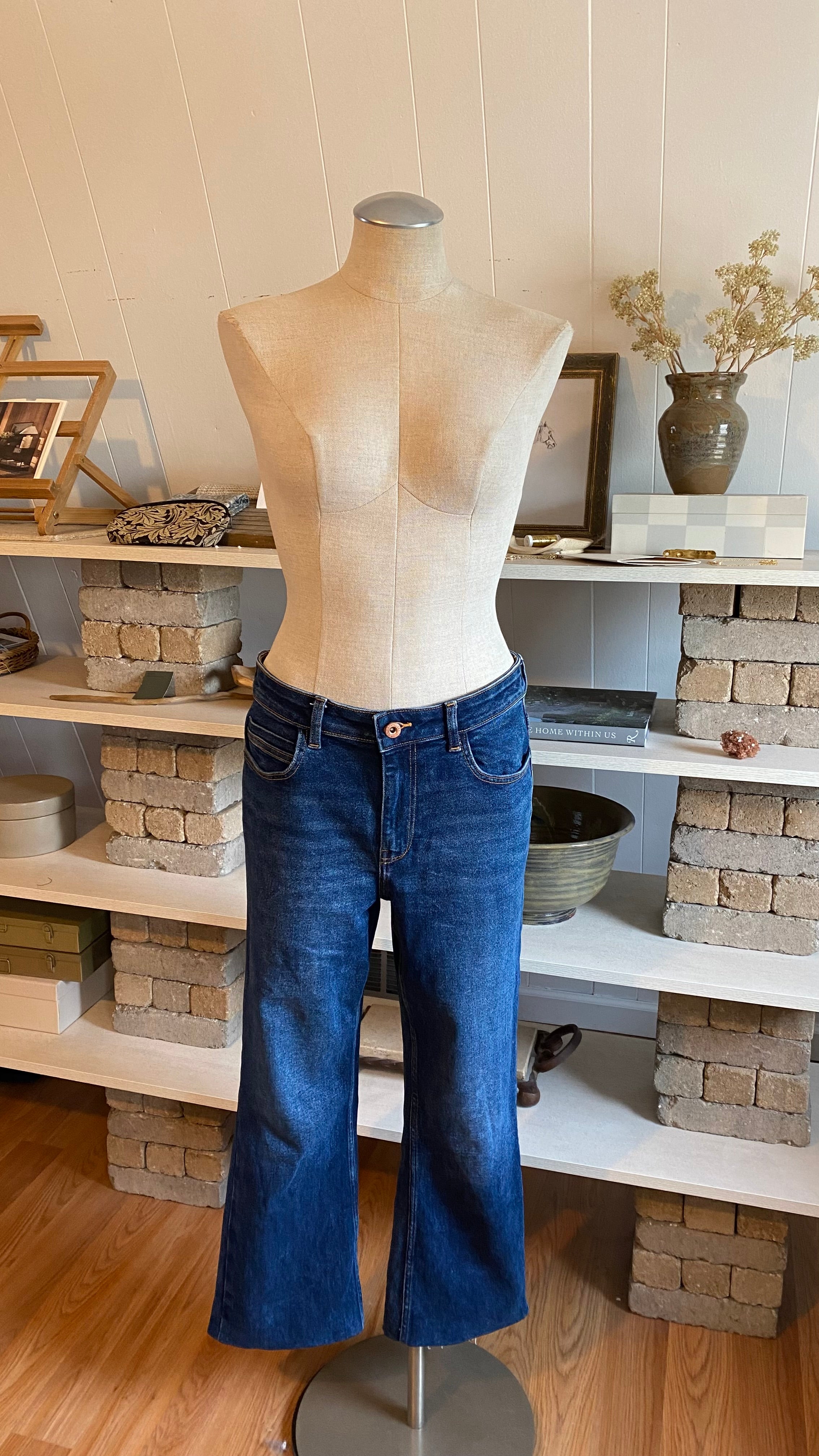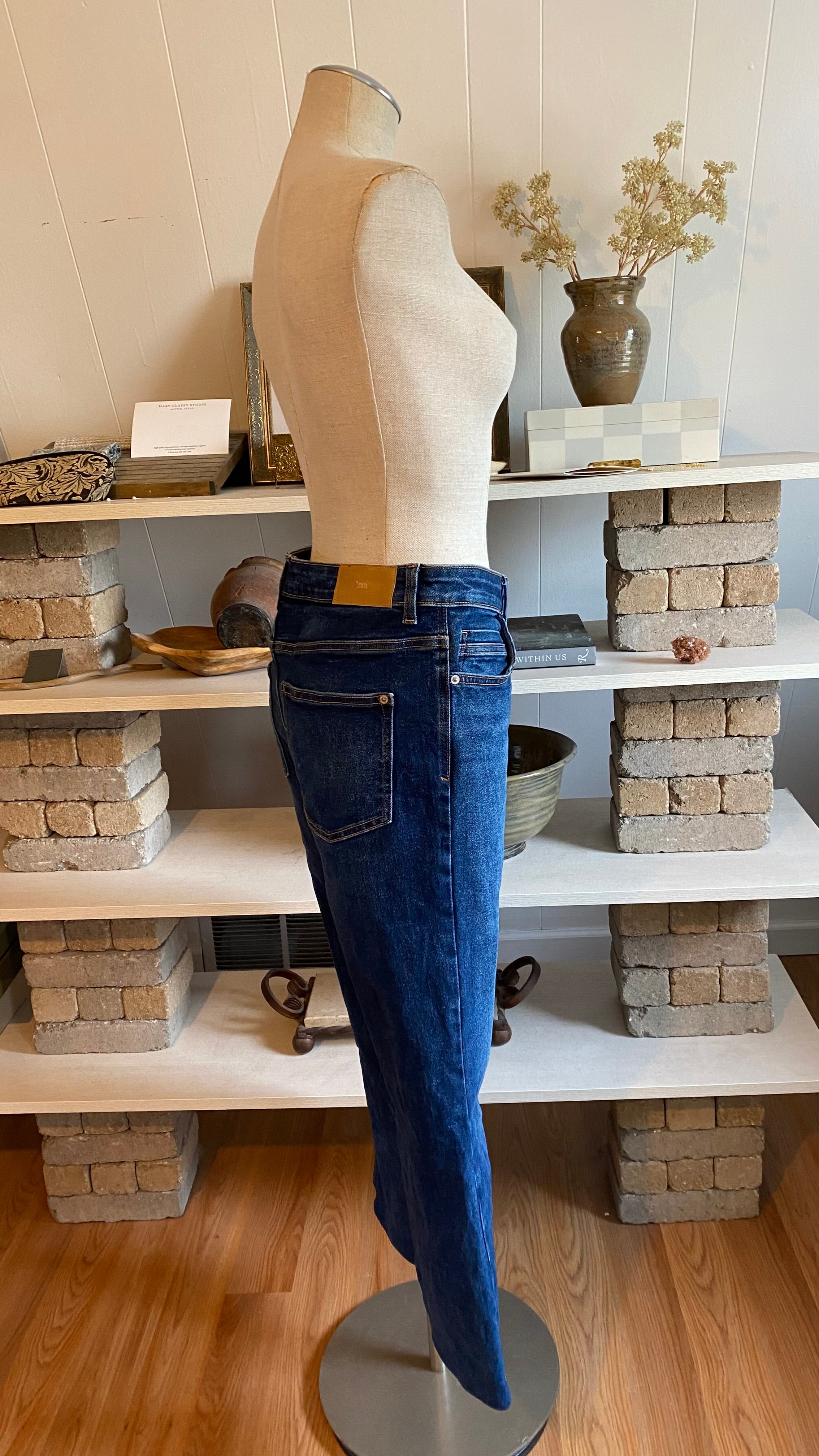 Zara size 8 high waisted dark wash denim (hemmed denim) measurements in photos